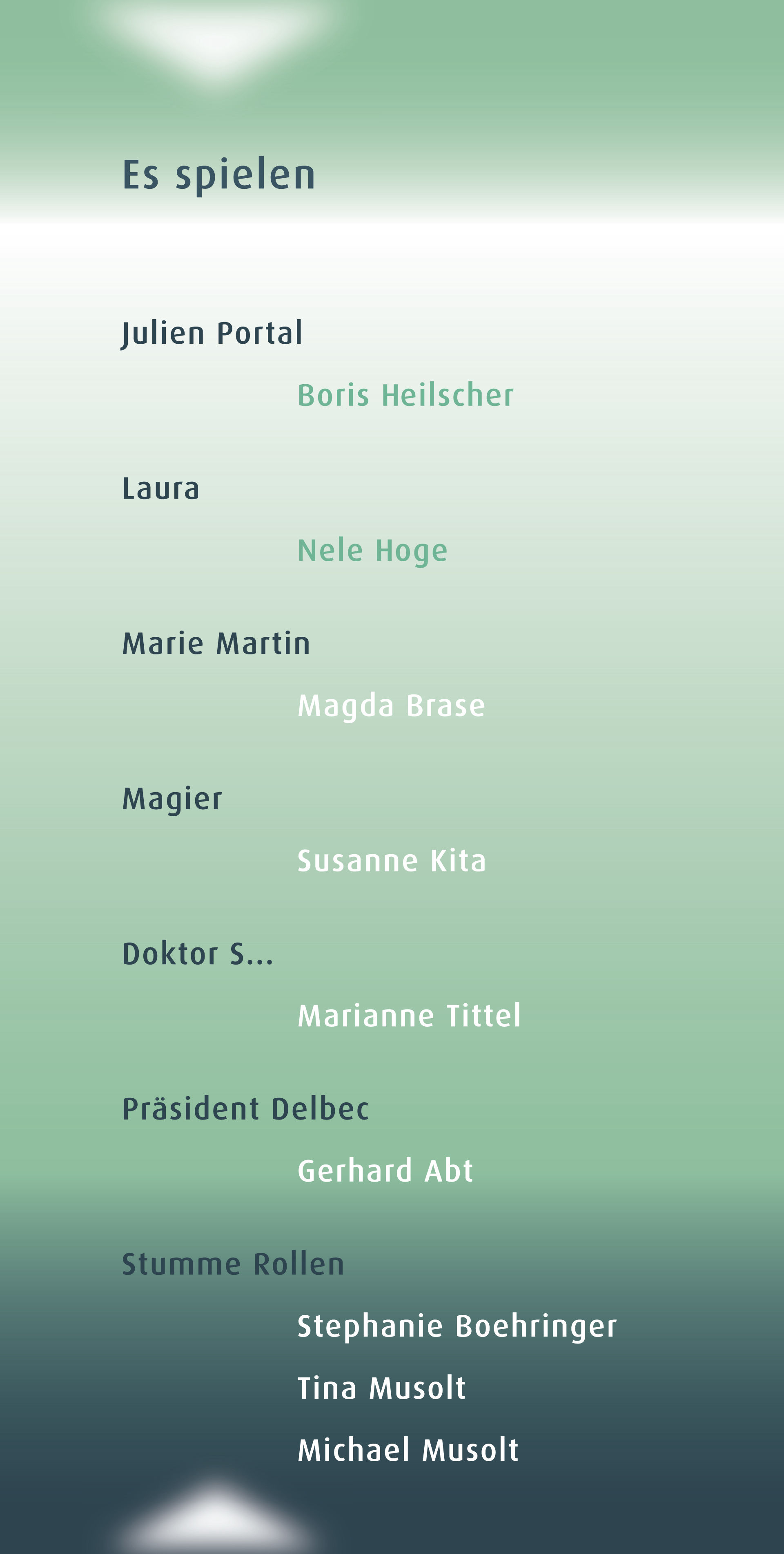 Es gibt keine feste Zuweisung von Rolle und Schauspieler'Innen, eine Person kann in verschiedene Rollen schlüpfen. Die einzelnen Szenen variieren und zeigen surreale und phantastische Momente.